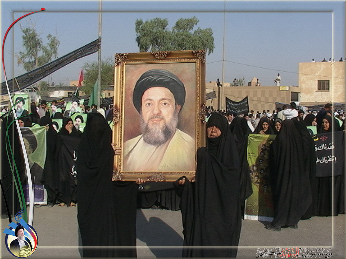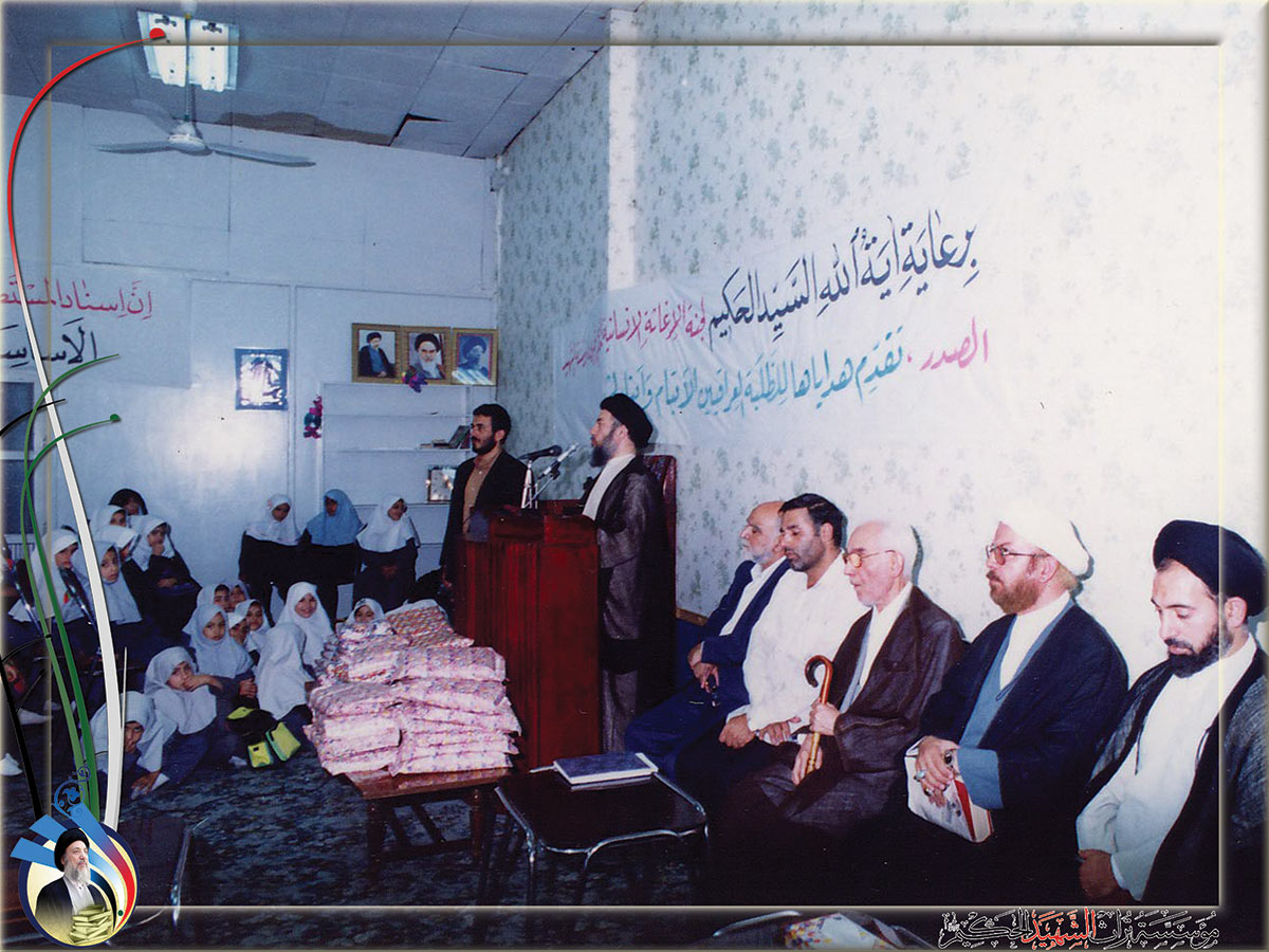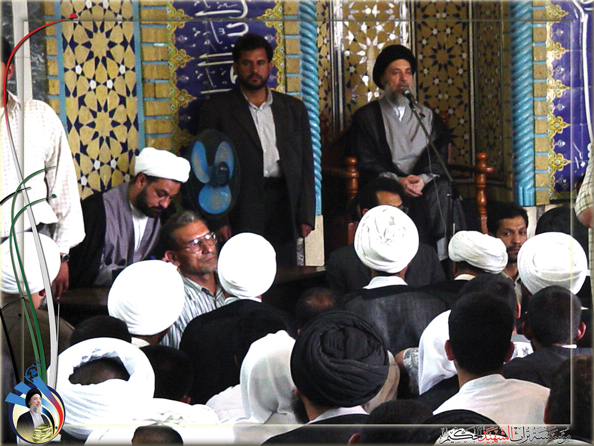 كلمة شهيد المحراب في النجف الأشرف مع كادر قسم شؤون المرأة في دار التبليغ الإسلامي عام 2003م.