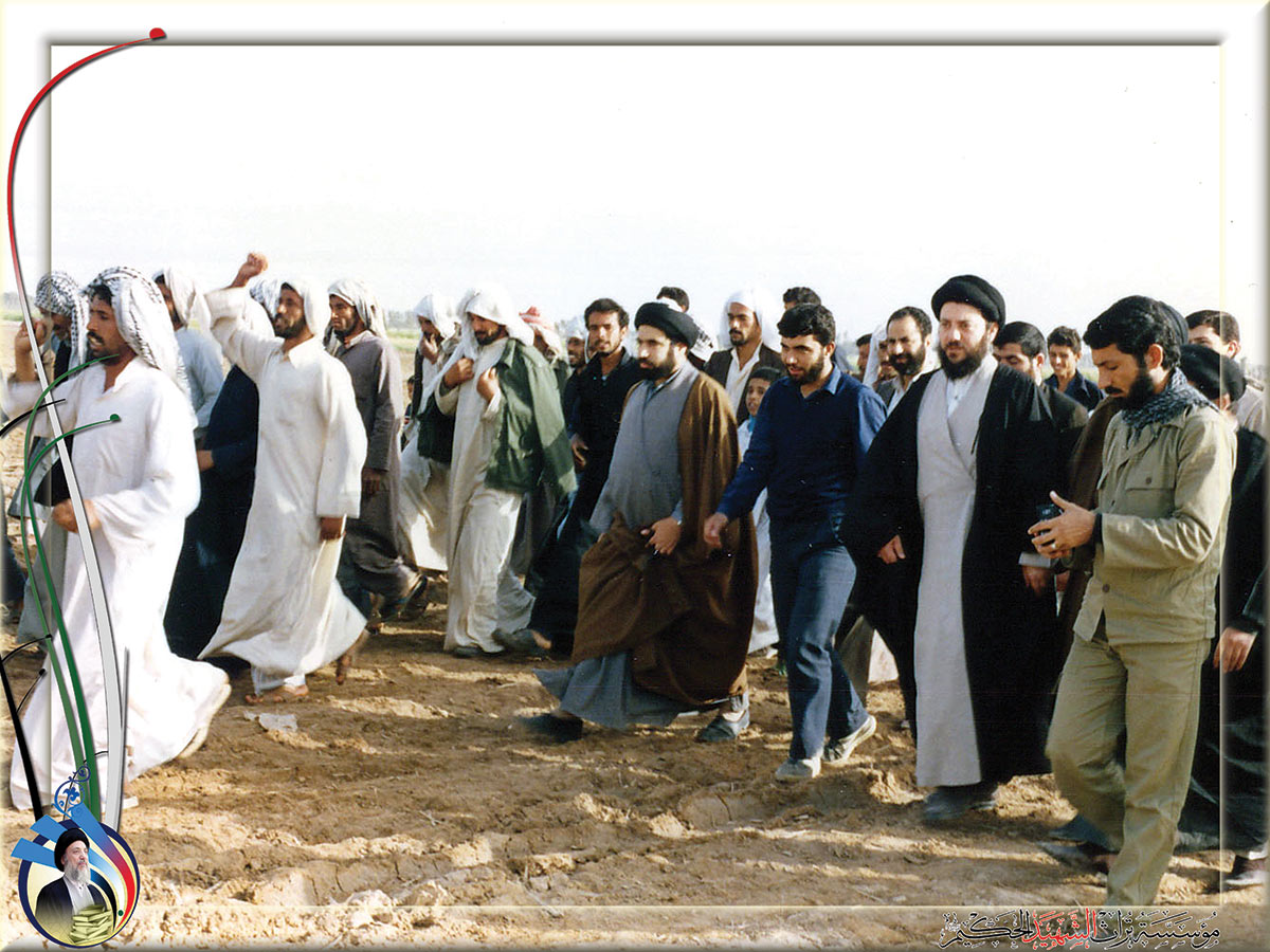 كلمة شهيد المحراب في مكتبه بالنجف الأشرف بأهالي الاسكندرية والمسيب والمحاويل والديوانية والميسان وعشيرة آل بدير