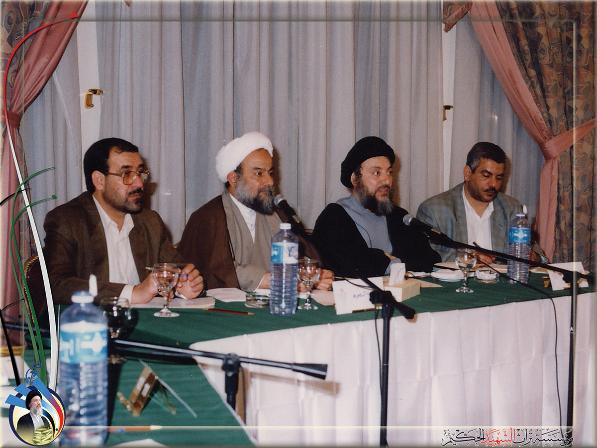 كلمة شهيد المحراب في النجف الأشرف مع كادر قسم شؤون المرأة في دار التبليغ الإسلامي عام 2003م.